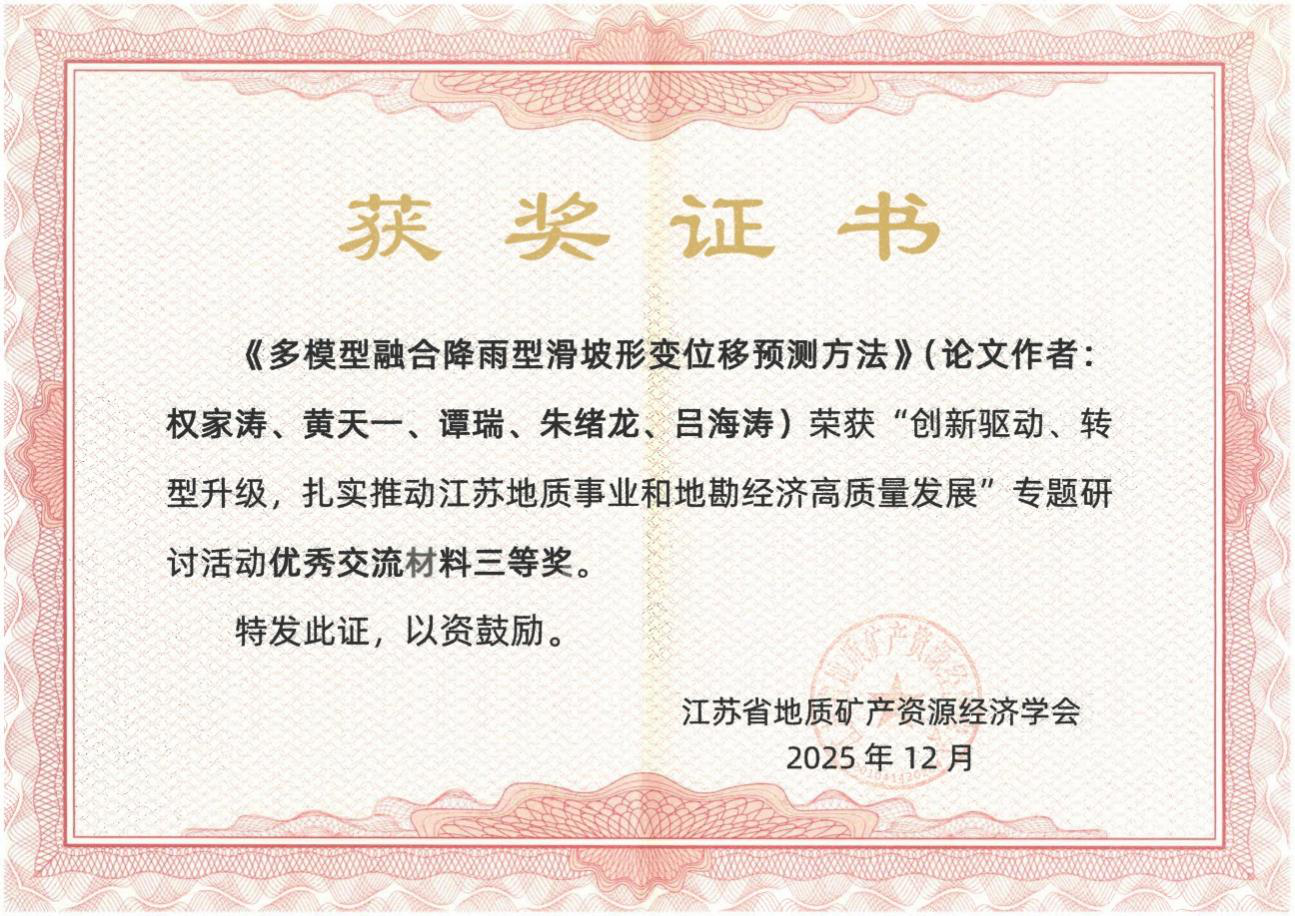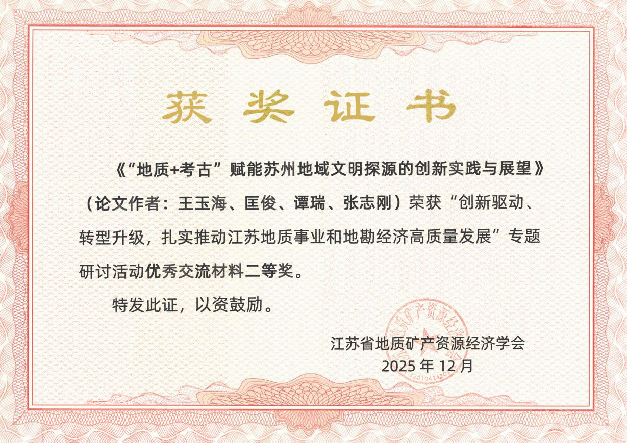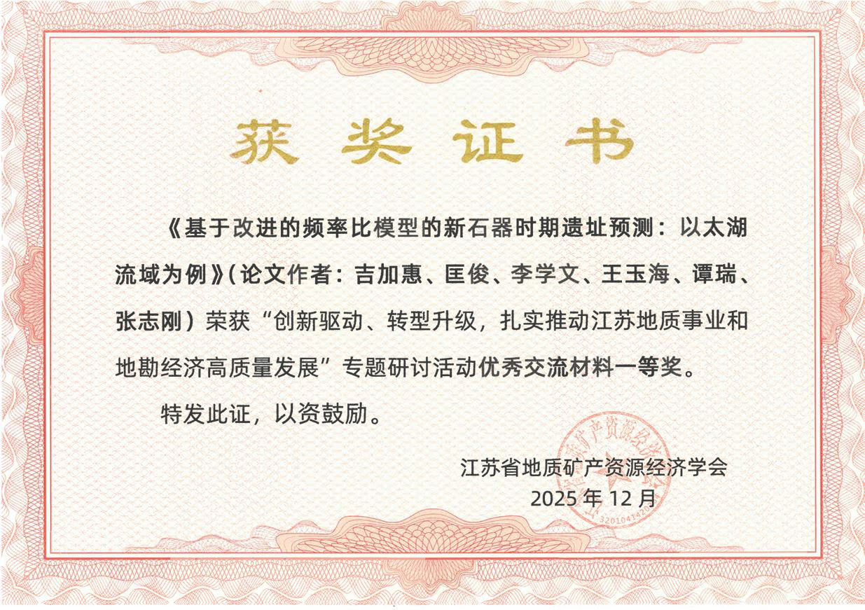 近日,在江苏省地质矿产资源经济学会推动江苏地质事业和地勘经济高质量发展专题研讨会上,地质四队选送的三篇学术论文分别获一二三等奖。其中,《基于改进的频率比模型的新石器时期遗址预测:以太湖流域为例》作为优秀论文和案例作者在大会上进行了交流。